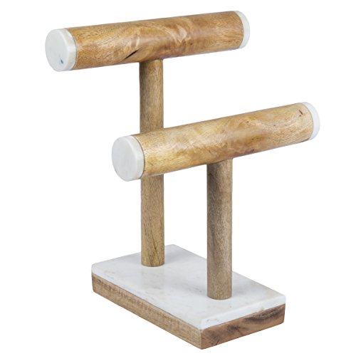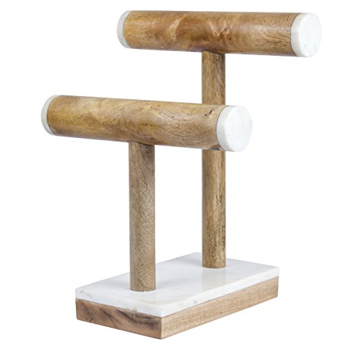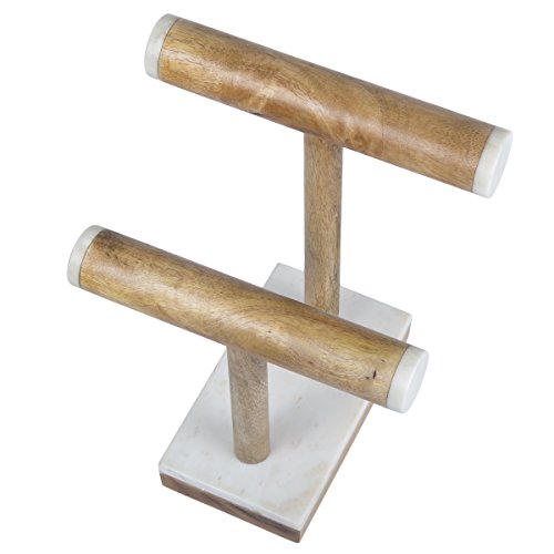 Creative Home 74873 White Marble Stone & Mango Wood 2-Tier Necklace, Bracelet Display Stand