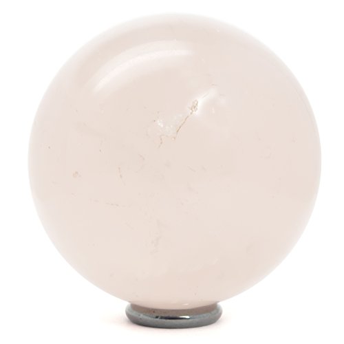 One-of-Kind: Natural Rose Quartz is polished into your new crystal healing ball. This is a translucent light pink stone with shiny planes and deep surface craters. The unique sphere comes with a metallic black Hematine display ring stand.