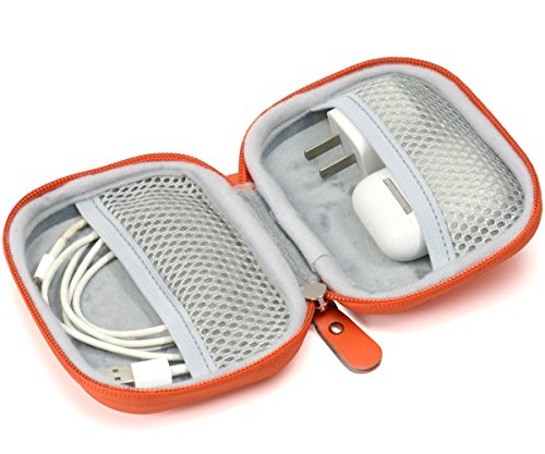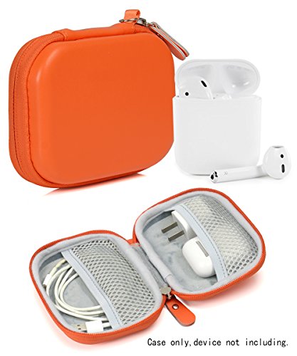 Travel Protection and Storage Case for Airpods Case, featured design, mesh pouches for airpods case, wall charger and cable (Orange)