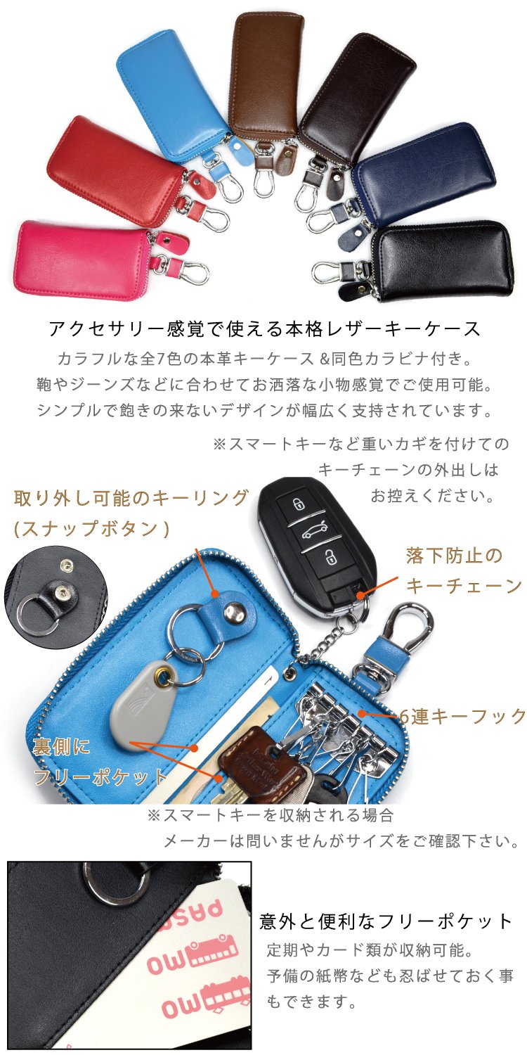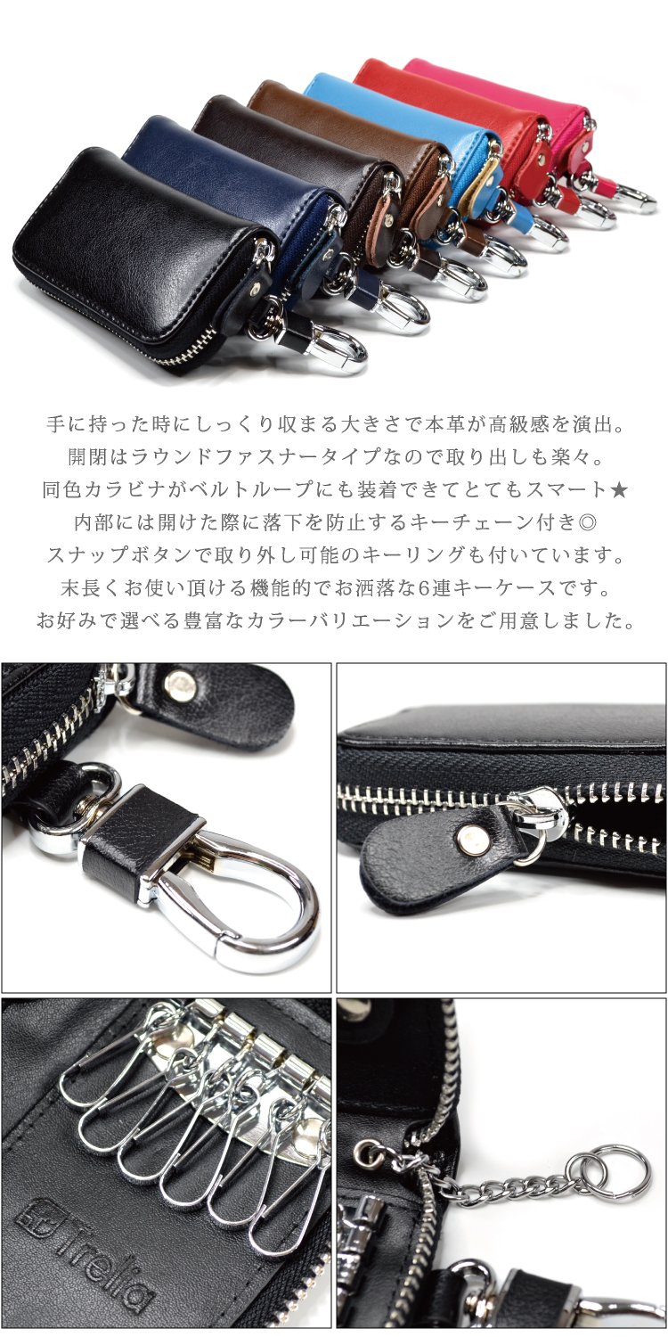 It is a 6-key key case with colorful all seven colors of real leather key case & carabiner of the same color.