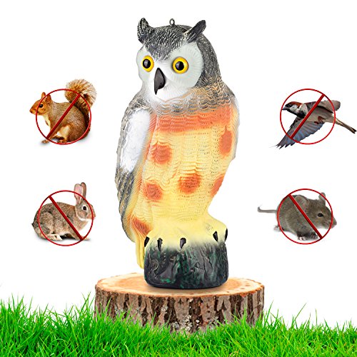 - MAKE PIGEONS, SQUIRRELS & WOODPECKERS GO THE OTHER WAY – Now you don’t have to worry about squirrels, rabbits, racoons, possums, sparrows, swallows, robins, cardinals, pigeons, crows or field mice any more. The robust and terrifying briteNway realistic scarecrow owl will keep all those irritating birds and pests away day and night. You can rest assured that the colors will not fade away thanks to the elite craftsmanship. Plus, it’s an eye-catching addition to your garden décor!