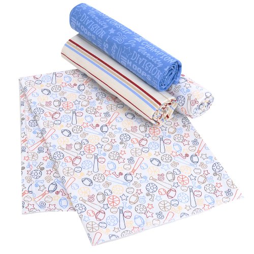 - Bundle your little guy in soft and soothing comfort with the 4-Pack of Just Born Touchdown Receiving Blankets. Crafted with 100% cotton, these lightweight, cozy blankets are decorated with sports-themed patterns.