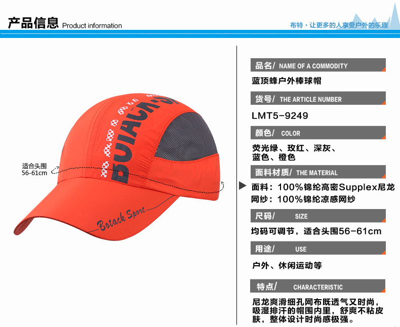 布特帽子男女潮遮阳防晒太阳帽运动帽夏速干透气户外情侣棒球帽