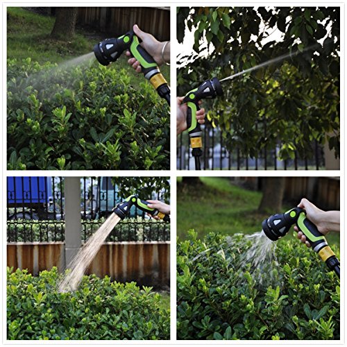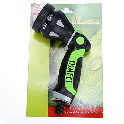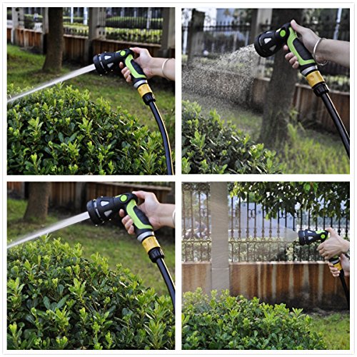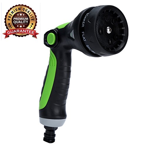 -. Feature : ✓Ergonomic, Slip-Resistant Handle - The handle has been designed ergonomically for your comfort and has been coated in an anti-slip material. Your Hand Won't feel Tired. The soft rubber coating makes this nozzle very comfortable in your hand so you can Watering for long periods of time. / ✓8 Spray Modes - Select from 8 different spray modes to suit your needs. Choose from Mist, Shower, Fan, Flat, Soaker, Cone, Jet and Center modes. These different modes make this device perfect for washing cars, watering plants, washing pets or cleaning pool and yard other areas. / ✓Ease Of Use And Durable - The innovative one touch switch provides the ultimate comfort. Your fingers don't get tired from keeping a trigger squeezed and the switch you can be operated with ease using only one hand. Rust proof Zinc alloy construction with heavy duty polymer for black surface and switch. / ✓Leak Protection - Enclosed ball-valve design superior to conventional nozzles. The pacifier connector design has been which can be fast attached to almost any hose and prevents leakage. / ✓PROTECT YOUR INVESTMENT: If You Don't Like It, You'll Receive A Full Refund With Our 90-Days 100% MONEY BACK GUARANTEE!