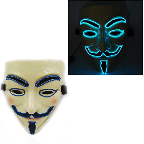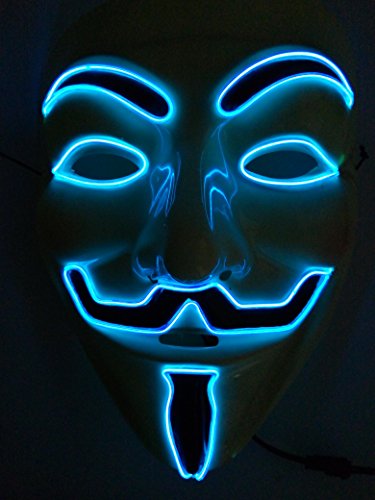 - El Wire Mask V for Vendetta, Anonymous Led party Mask Perfect for riding,skating at night and many sports, halloween, costume parties, masquerades, mardi gras, rave festivals, carnivals, gifts, and more