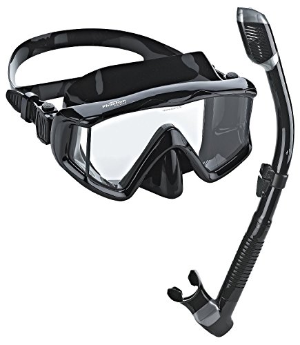 Phantom Aquatics Panoramic Scuba Mask Snorkel Set, All Black
