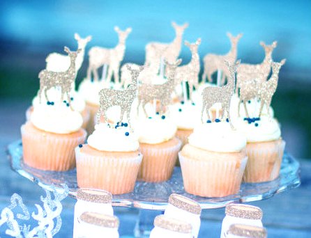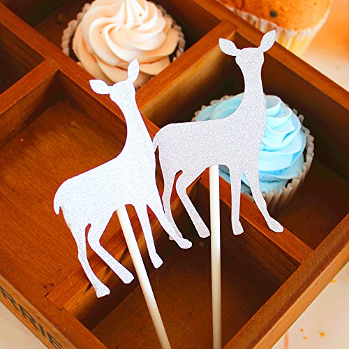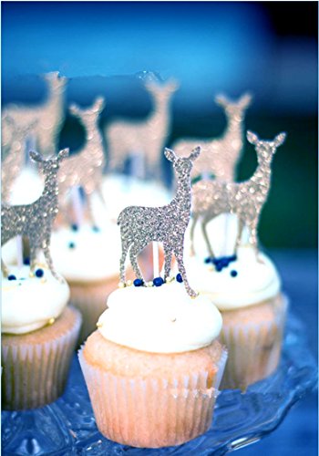 Set of 10 Glitter Reindeer Christmas Cake Cupcake Topper Decoration (Silver)