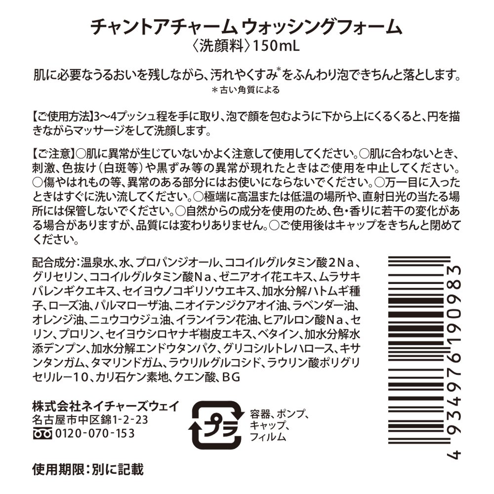 Weakly acidic fluffy bubbles derived from plants moisturize the washings while firmly removing dirt and dullness.