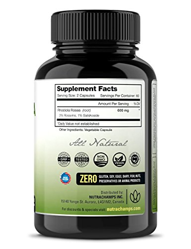 -. Feature : ★ EASE STRESS & BOOST YOUR MOOD - Have you been feeling brain fog, stressed, or exhausted? Rhodiola helps you fight the fog while keeping you relaxed and ready to take on your day. Whether you've got a busy day ahead at the office, classroom, or home, NutraChamps Rhodiola is guaranteed to ease your mind while improving your focus, clarity, and mood. / ★ HIGHEST POTENCY SIBERIAN HERB - Are you looking for the most pure and potent rhodiola supplement on the market? Well we've just brought you exactly that. 300mg capsules packed with the highest quality rhodiola root extract, grown in the Siberian mountains for at least four years before being harvested. Standardized to 3% Rosavin 1% Salidroside, the most beneficial extract available. / ★ BOOST ENERGY & STAMINA - Looking for a natural boost in your energy and mood? Our pure rhodiola comes in easy-to-swallow vegetarian capsules and helps you stay focused and alert throughout the day, keeping you on track to stay positive, excel, and win the day. Rhodiola has the ability to boost your immunity and defend against disease and cell damage that can drag you down, stabilizing and maintaining your body and overall well being to help you live a balanced, healthy life. / ★ VEGAN & NON-GMO - NutraChamps Rhodiola is vegan, non GMO, gluten-free, and contains zero artificial ingredients. You'll never find extraneous chemicals or magnesium stearate in our supplements. Our clean formulas provide real results, without the unwanted side effects many other supplements can bring. Proudly Made in USA at our FDA Registered GMP Facility. Bottle color & label design may vary. / ★ 100% LIFETIME GUARANTEE - All of our products are backed by our lifetime guarantee - If you aren't fully satisfied, simply let us know and we'll refund your entire purchase, with no hassles. The NutraChamps Guarantee is a sign of how confident we are in the superior quality and effectiveness of our products. Order with confidence knowing that we've got you covered - What do you have to lose?