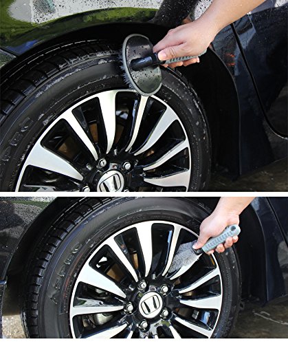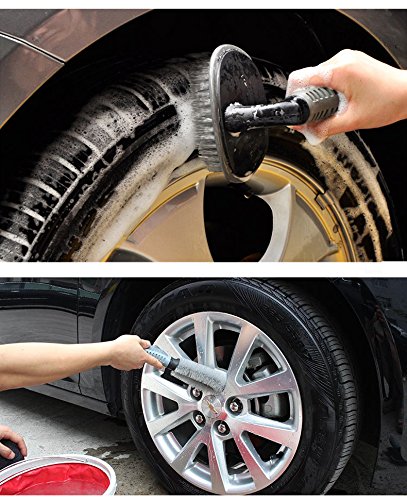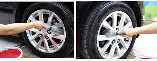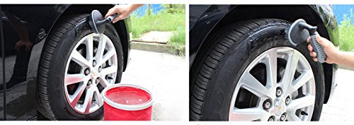 -. Feature : Ideal for cleaning wheels, fenders, and bumpers / Wheels Brush makes cleaning your wheels, tire much easier with the rubberized grip. / The handle is made of PVC soft rubber, Non-slip comfort grip / Suitable for all kinds of vehicle wheel tire, also Great for cleaning home, patio items, boats, RVs, and hard-to-reach places.