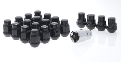 White Knight 791707SBKAM Black Chrome Finish 12mm x 1.50 Thread Size Bulge Acorn Lug Nut Wheel Installation Kit with Wheel Lock, (Pack of 16)