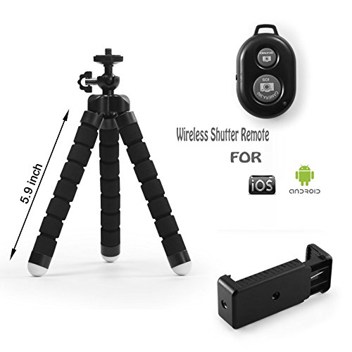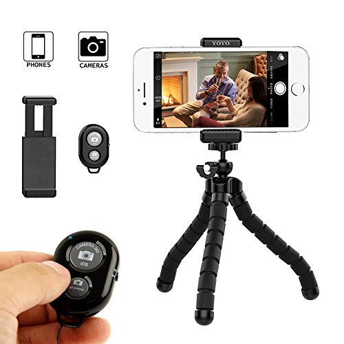 iPhone Tripod,YoYo Stand Holder,Octopus Style Portable and Adjustable with Bluetooth Remote and Universal Clip,Tripod for Android & iOS Phone,Camera (Black)