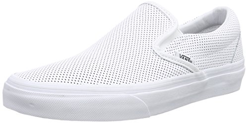 Vans Unisex Classic Slip-On (Perf Leather) White Skate Shoe 8 Men US / 9.5 Women US