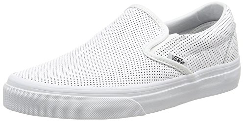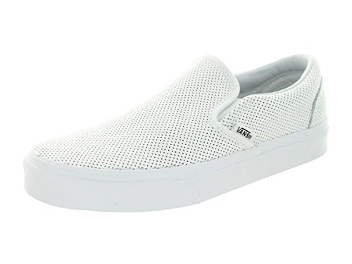 Vans Unisex Classic Slip-On (Perf Leather) White Skate Shoe 6 Men US / 7.5 Women US
