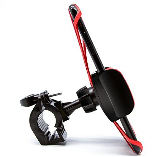 - PREMIUM QUALITY, The premium hard plastic material will keep from breaking. The silicone net, unlike rubber, is extremely strong and durable. Soft red rubber lines for clamp can reduce vibration as well as avoid phone surface scratches. It works really well on roads and most trails.