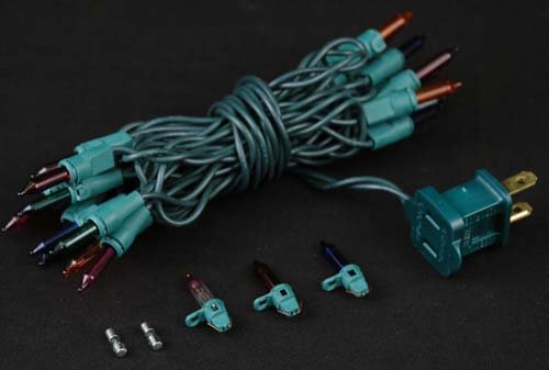 - Novelty Lights presents this commercial grade 22 gauge Green wire Christmas craft mini light set that has 20 lights spaced 4" apart and is 8 feet long. This craft mini light set is non-connectable end to end meaning that each string is made with only a male plug. Each set comes with 2 replacement bulbs, 1 flasher bulb, and extra 2 fuses.