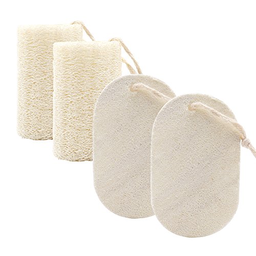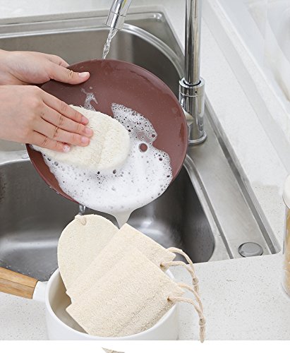 4 Packs Sponges Kitchen 100% Mildew-Free Pure Natural Loofah Sponge for Dishes Pots Pans Vegetable Non Stick Dishwashing Sponge Brush Scrubber