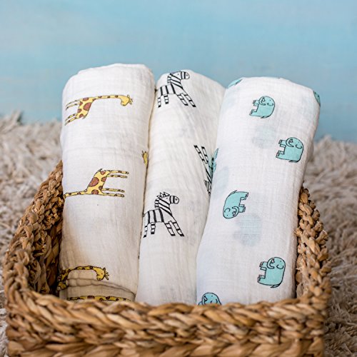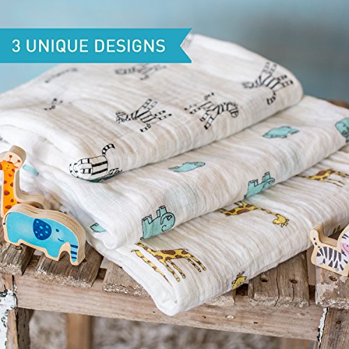 The Softest Muslin Swaddle Blankets: A Perfect Newborn Gift! 3-Pack 47X47 Soft & Breathable 100% Organic Cotton Swaddles for Baby Boys & Girls. Multipurpose: Nursing Cover, Burp Cloth, Stroller Cover