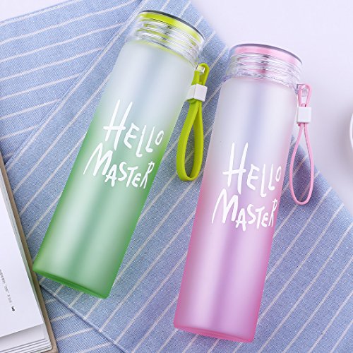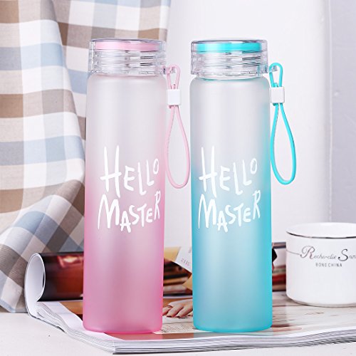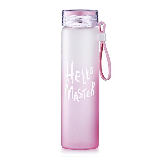 No Lead Glass Bottle Slim Frosted Gradient Color Glass Drinking Water Bottle, Fruit Infuser Water Drinking Bottle Healthy Lemon Juice Maker287G 450ML/15oz (Pink)