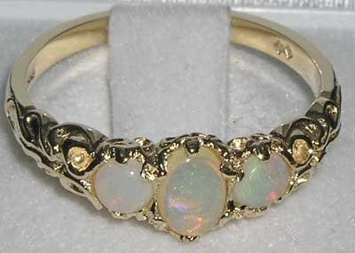 -. Title : 14k Yellow Gold Natural Opal Womens Trilogy Ring - Sizes 4 to 12 Available