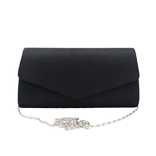 You'll be the party girl with the right accessory!Size: 9.5 X 2 X 5in(L*W*H); Novel outer worsted material with shining powder, inner material is polyester;Magnet closure, inner has one small phone pocket;Chain length: 120cm, can be easily removed. 3 wear styles: clutch bag, shoulder bag or cross-body bag. You choose how you want to wear it!Shining and simple design, fits for most occasion, especially for party and club.Dear Customers, thanks for your business, if you're satisfied with our items, please give us a positive feedback. We will appreciate you very much. If for any reasons that you are not satisfied with our items or service, please feel free to contact us before you are leaving a negative feedback. We will try our best to solve the problem and offer the best service to you. The best way to contact us is through Amazon messages, we check our message regularly. If you have any question, just ask.Feature