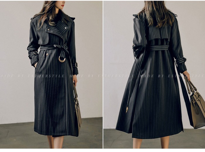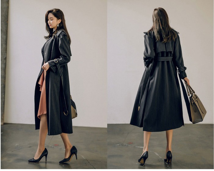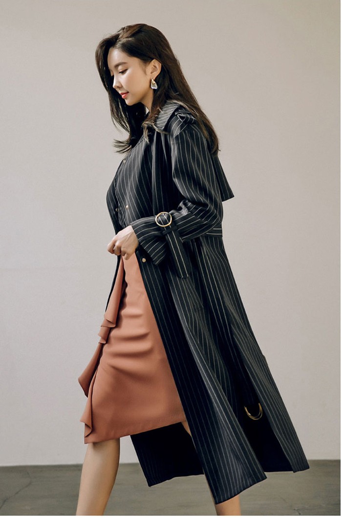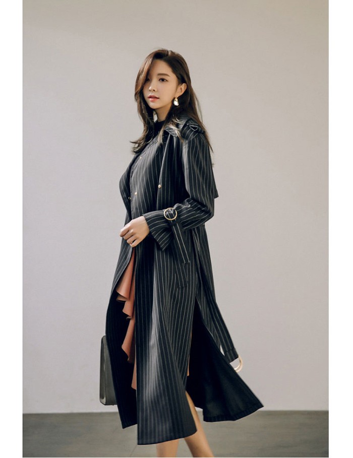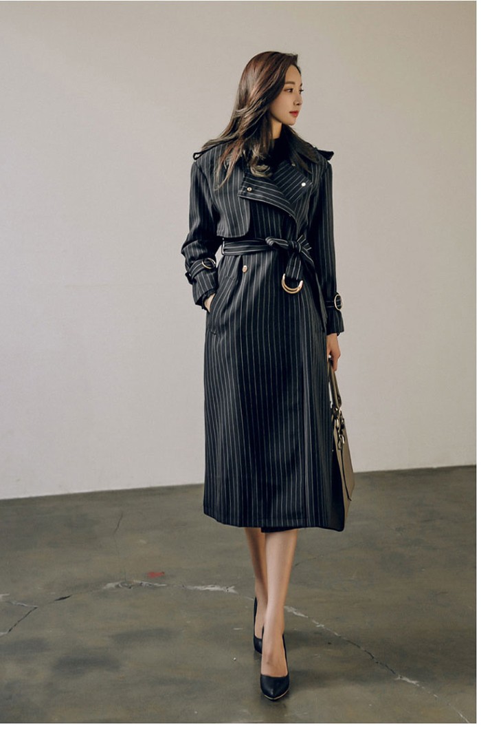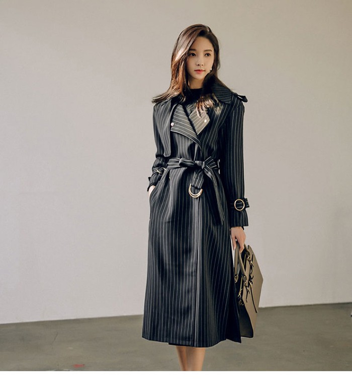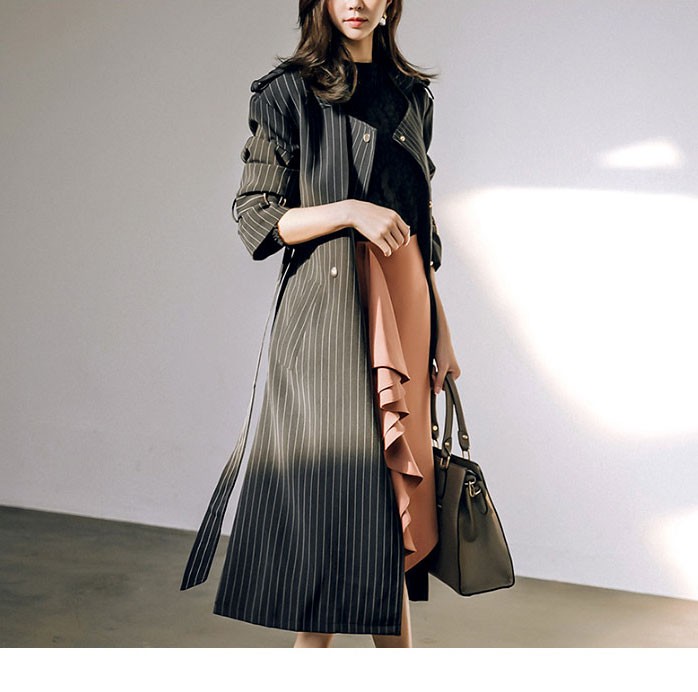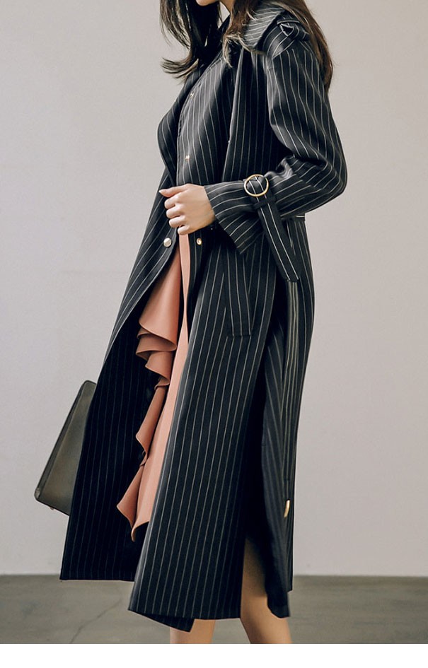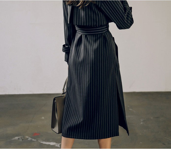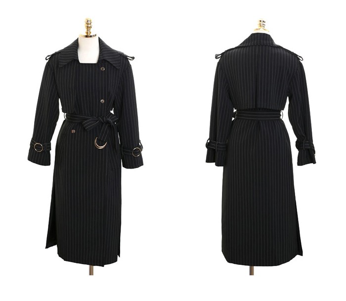 商品名:トレンチコート ロング丈 ロングコート ストライプ きれいめ
