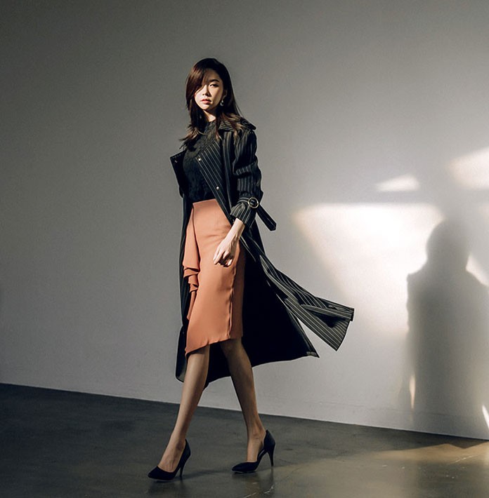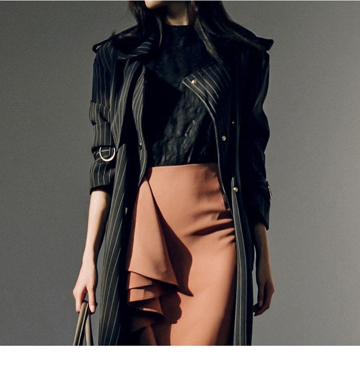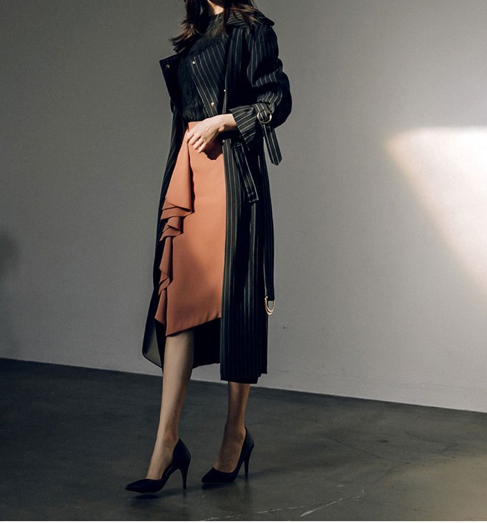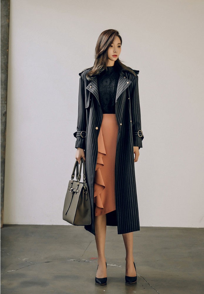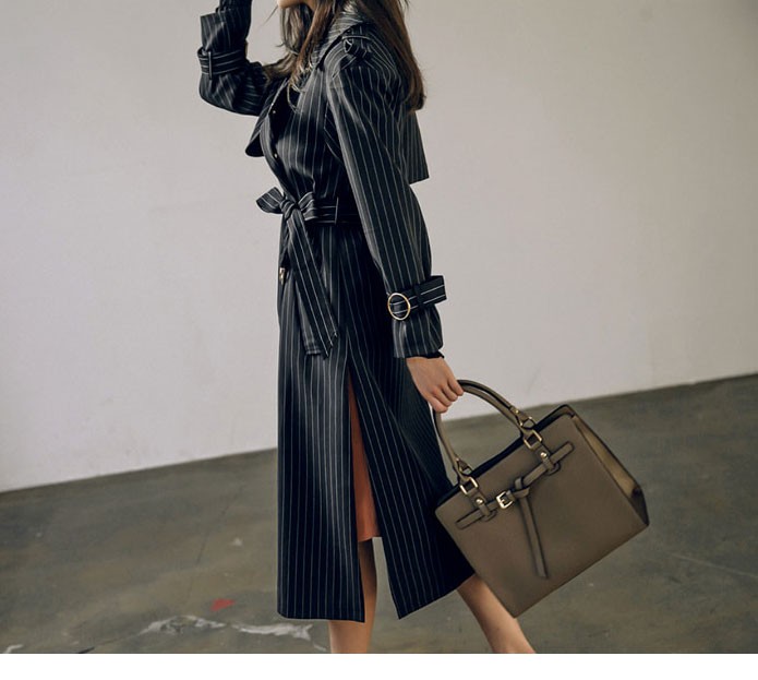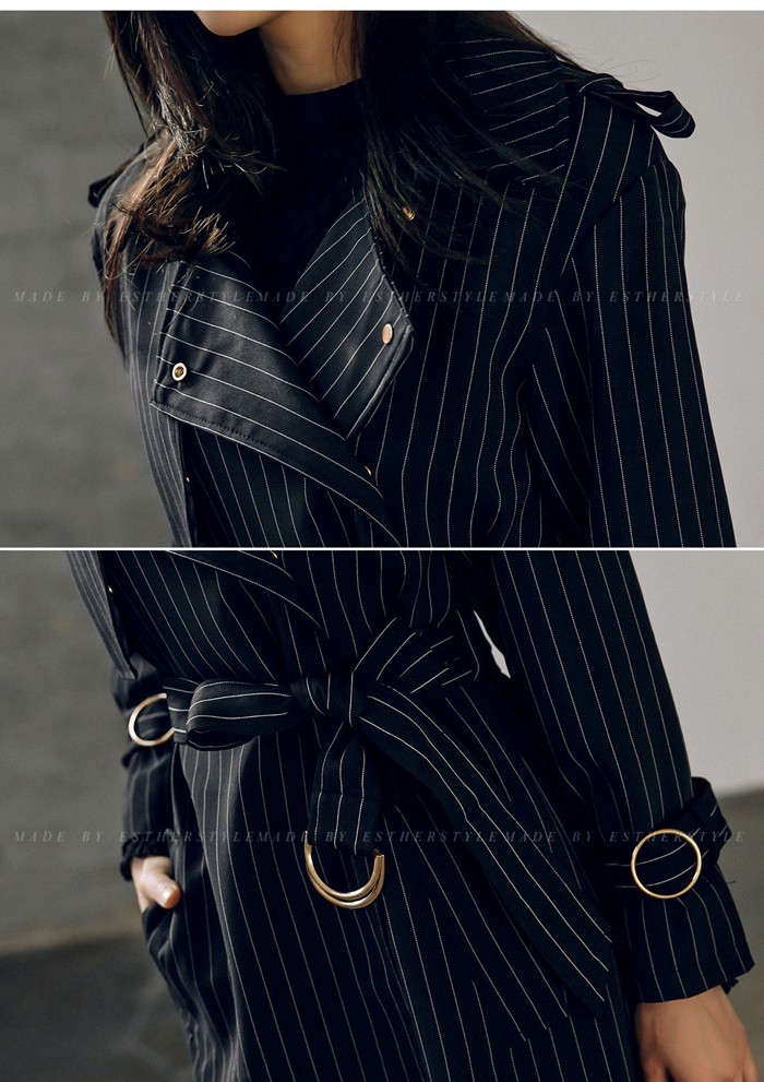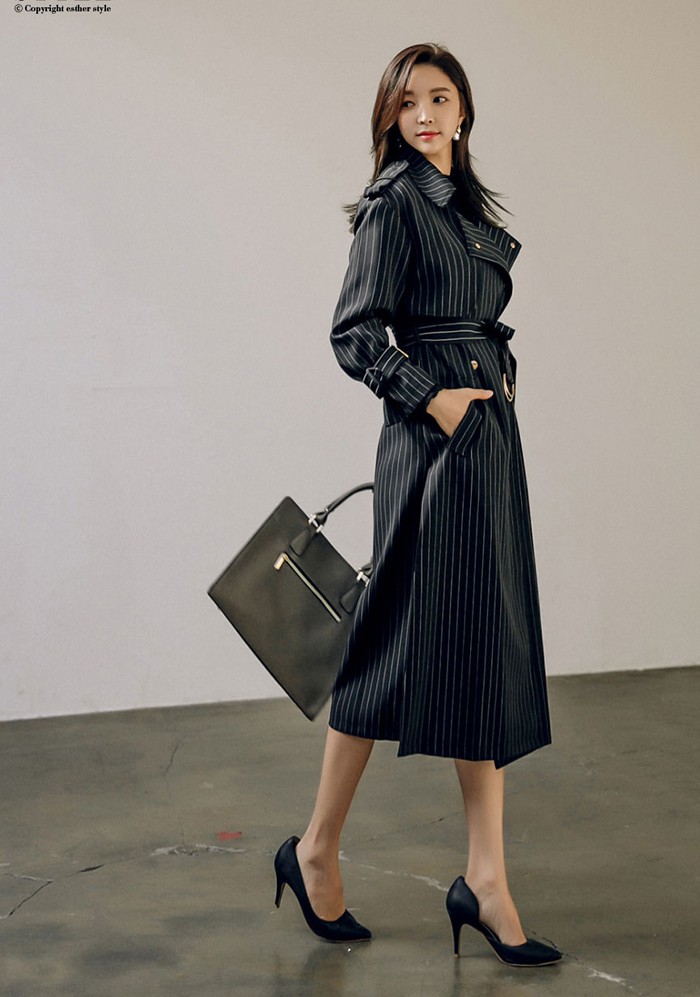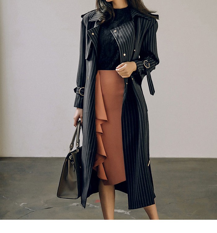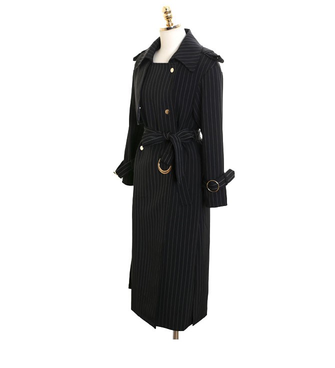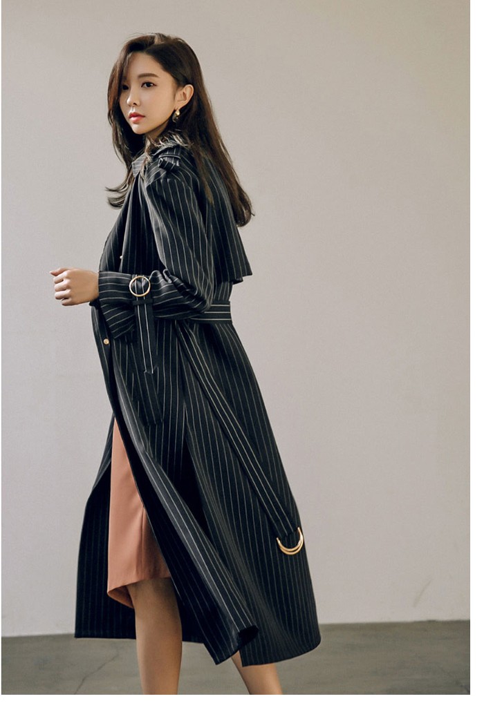 商品名:トレンチコート ロング丈 ロングコート ストライプ きれいめ