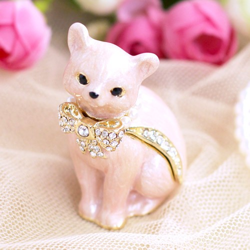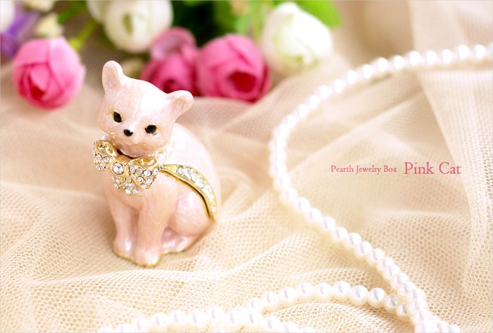 | ジュエリーボックスと言えば、指輪やピアス、ネックレスなどのアクセサリーを入れる引き出し型のケースを思い浮かべる方が多いかもしれません。 ピィアースのジュエリーボックスは、動物や花などをモチーフに作られ、合金製でずっしりとした重さがあります。また高品質のクリスタルガラスを贅沢に使用。まるでジュエリーボックスそのものが宝石のような、高級感溢れる仕上がりです。 小物入れとしても使えるように開閉口には磁石が取り付けてあり、アクセサリーなどなくしやすいアイテムの収納ができます。キラキラと美しく輝く宝石箱は、そのまま飾って楽しめるインテリア雑貨として多くの方に愛されています。 国内トップクラスのジュエリーボックスメーカーであるピィアースは、2004年ごろから本格的に宝石箱の製造を始め、現在のジュエリーボックスはなんと300種類以上。大規模展示会でもご好評いただいており、全国有名百貨店でも販売されています。 自社工場でひとつひとつ丁寧に手作りし、原型作成、研磨、加工、着色、小さなクリスタルガラスの取り付けなども全て手作業で行われるこだわりのハンドメイド品。完成後は厳しい検品の後、丁寧に梱包作業をしお客様にお届けしております。 ピィアース商品は、全国有名百貨店および全国有名宝石店チェーンにてお取り扱いいただいている高品質商品です。 ★自分へのご褒美に…コレクションして並べて飾ると、さらにかわいらしさUP! ★恋人へのプレゼント…中にアクセサリーを入れて、サプライズな贈り物として ★家族への感謝ギフト…お母さんや姉妹へ、日頃のありがとうの気持ちを込めて ★誕生日プレゼント…お友達の喜ぶ顔が見たいから、いつもと違うキラキラギフトを ★小さな女の子へ…まるでお姫様が使っているようなキラキラ宝石箱は女の子の憧れ! |