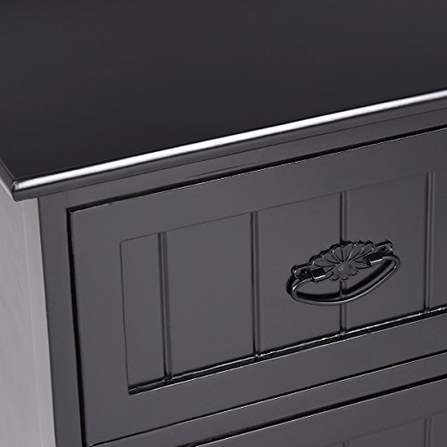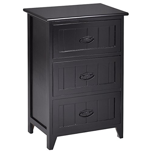 Feature: Brand new and high quality 3 drawer storage unit Easy-glide drawer Sturdy and durable Stylish, modern and elegant style Constructed of high quality, non-toxic material Finished in a black glossy style finish Vintage style handles Wipe-clean surface, and easy to clean Ideal as a bedside table, in the bathroom, hallway, living room etc for your storage needs No assembly required