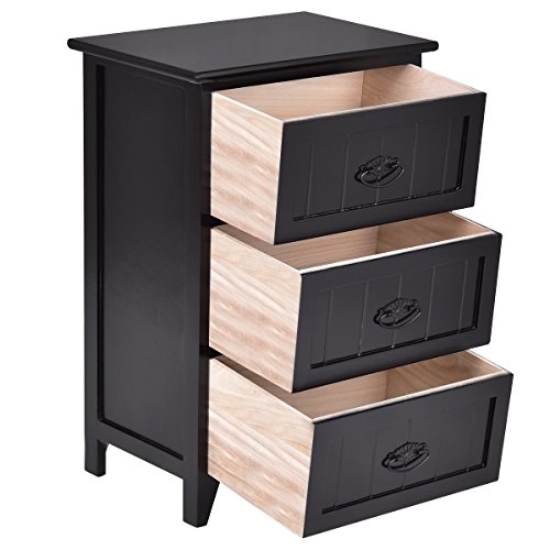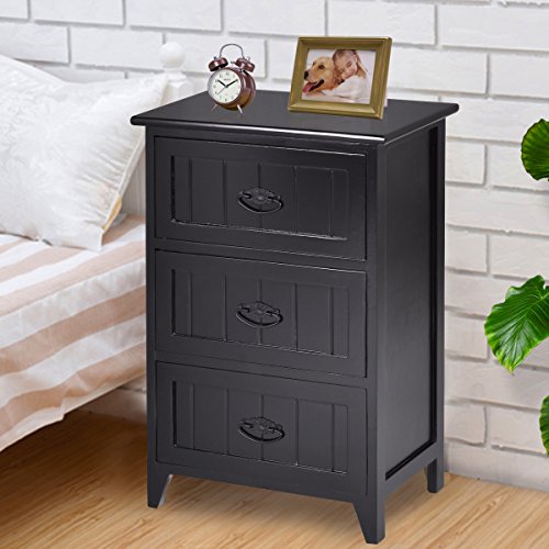 Studio : Giantex Publisher : Giantex Product Description Product Description: Our brand new Wood Nightstand is an ideal combination of elegance and functionality. This unit features black finish, and vintage style handles. Constructed of high quality, non-toxic MDF material, this cabinet is sturdy and reliable. Three drawers provide plenty of storage, can be used to store books, clothes or other accessories you want beside your bed. The classic black on the contemporary furniture will surely compliment any room decor. Don't hesitate to add it to your cart!