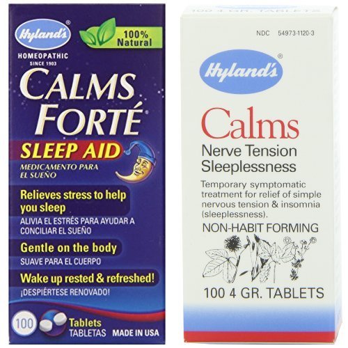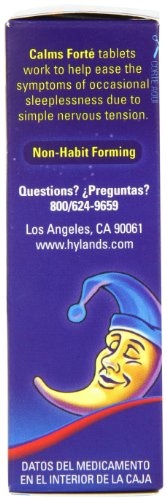 Hyland's Calms Forte' Sleep Aid Tablets, Natural Relief of Nervous Tension and Occasional Sleeplessness, 100 Quick Dissolving Tablets Temporarily relieves the symptoms of occasional sleeplessness and restlessness with accompanying stress, anxiousness, nervousness and irritability.