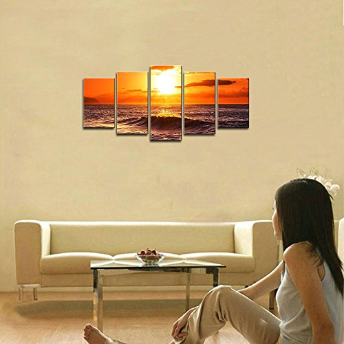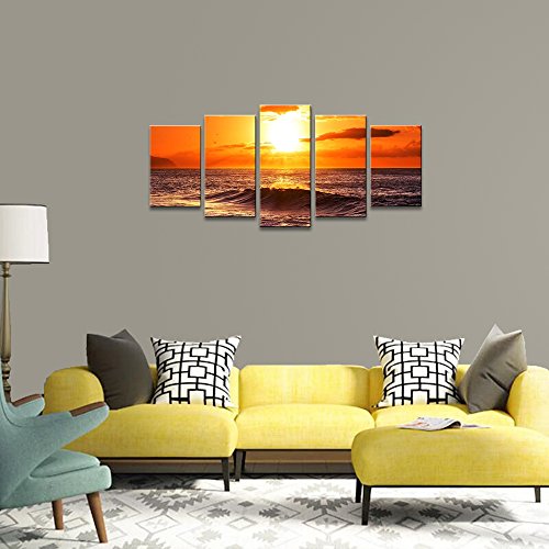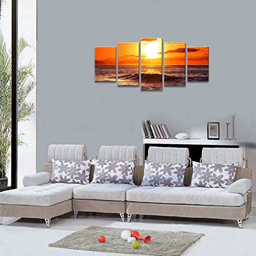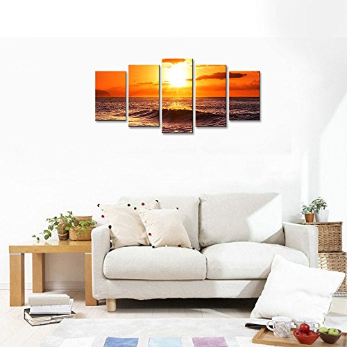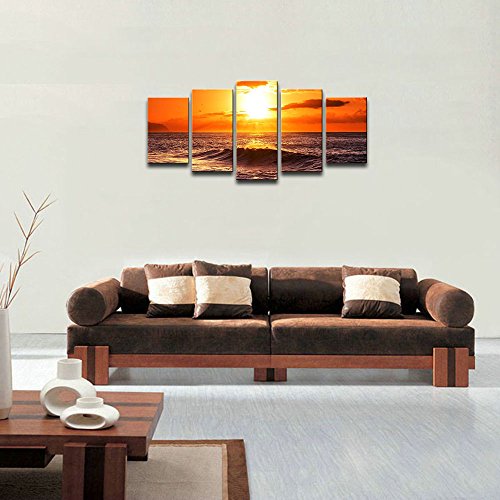 -. Title : Wieco Art - The Morning Sea 5 Panels Modern Stretched and Framed Giclee Canvas Prints Artwork Ocean Seascape Pictures Photo Paintings on Canvas Wall Art for Home Office Decorations 5pcs/set