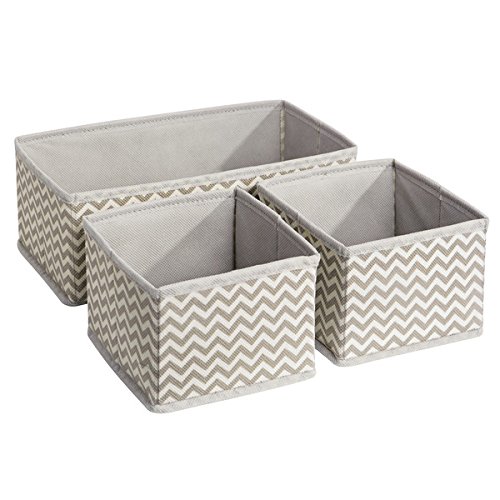 mDesign Chevron Fabric Desk Drawer Storage Organizer for Office Supplies, Highlighters, Pens, Notepads, Scissors, Tape - Set of 6, Taupe/Natural