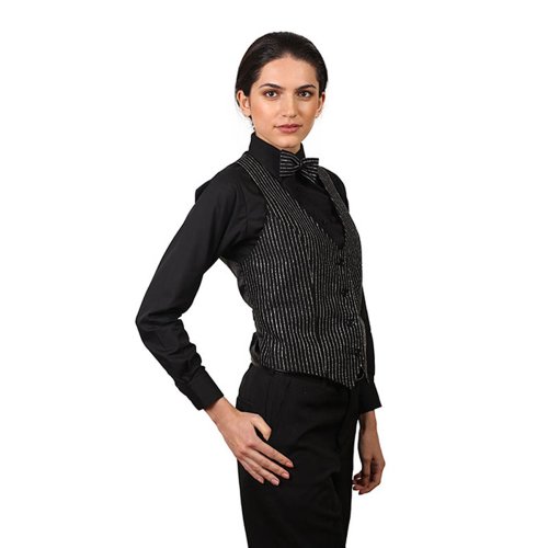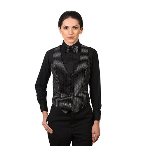 (SixStarUniforms)/Women/Outerwear/DIRECT FROM USA/Women's Black Silver Glitter Pins tripe Pattern Ves t