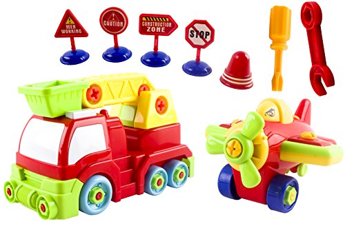 -. Feature : PACKED WITH FUN FOR ALL CHILDREN - SAFE FOR ALL CHILDREN: Brightly Colored and Durable Sturdy Quality SAFE for Younger Toddlers, Can Take Apart the Toy Fire Truck and Toy Airplane / INCLUDES MANY ACCESSORIES: Includes Take a Part Toy Fire Truck, Take a Part Toy Airplane, Traffic Signs, Construction Zone Signs, Cone, Screwdriver, Wrench / EDUCATIONAL LEARNING ABILITIES: Teaches Children to be creative and make the use of their mind. Educational toys build children's brains from a young age which then reflect upon their learning abilities for the rest of their life. Strong Notice ability in an assortment of vibrant rainbow colors. / RECOMMENDED FOR AGES 18 MONTHS AND UP: Suitable for 18+ Months Children for Intelligent Learning and Mind Creativity / 30 DAY 100% MONEY BACK GUARANTEE: Buy with confidence! All Vokado products are backed by Amazon 30 day return policy and fulfillment service.