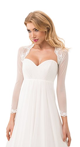 Wedding bridal white or ivory lace bolero jacket shrug long sleeved