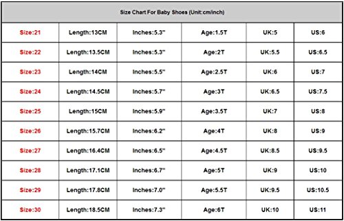 ?:Description: ?:Features: ?: ?:It is made of high quality materials,Soft hand feeling, no any harm to your baby's skin ?:Lovely and Charming design available,Make your baby more lovely ?:Anti-slip design keeps baby in safe ?:Zip design makes it easy to take off ?: ?:Product information: ?: ?:Great gift to baby ?:Gender:Boy,girl ?:Shoe upper material:PU leather ?: Sole material:Rubber ?:Style:Casual,Fashion ?:Package content:1 pair baby shoes ?:Note: ?:Due to lighting effects, monitor's brightness/contrast settings etc,there could be some slight differences in the color tone of the pictures and the actual item ?:If you have problem of the item, please contact us we will do our best to resolve the problem for you ?:We suggest you choose a larger size,if your actual feet length is longer than the above feet length ?: ?:Size Chart: ?: ?: Size:21===Length:13CM===Inches:5.3"===Age:1.5T==UK:5===US:6 ?: Size:22===Length:13.5CM==Inches:5.3"===Age:2T===UK:5.5==US:6.5 ?: Size:23===Length:14CM===Inches:5.5"===Age:2.5T==UK:6====US:7 ?: Size:24===Length:14.5CM==Inches:5.7"===Age:3T===UK:6.5==US:7.5 ?: Size:25===Length:15CM===Inches:5.9"===Age:3.5T==UK:7====US:8 ?: Size:26===Length:15.7CM==Inches:6.2"===Age:4T===UK:8====US:9 ?: Size:27===Length:16.4CM==Inches:6.5"===Age:4.5T==UK:8.5==US:9.5 ?: Size:28===Length:17.1CM==Inches:6.7"===Age:5T====UK:9===US:10 ?: Size:29===Length:17.8CM==Inches:7.0"===Age:5.5T==UK:9.5==US:10.5 ?: Size:30===Length:18.5CM==Inches:7.3"===Age:6T====UK:10==US:11 0