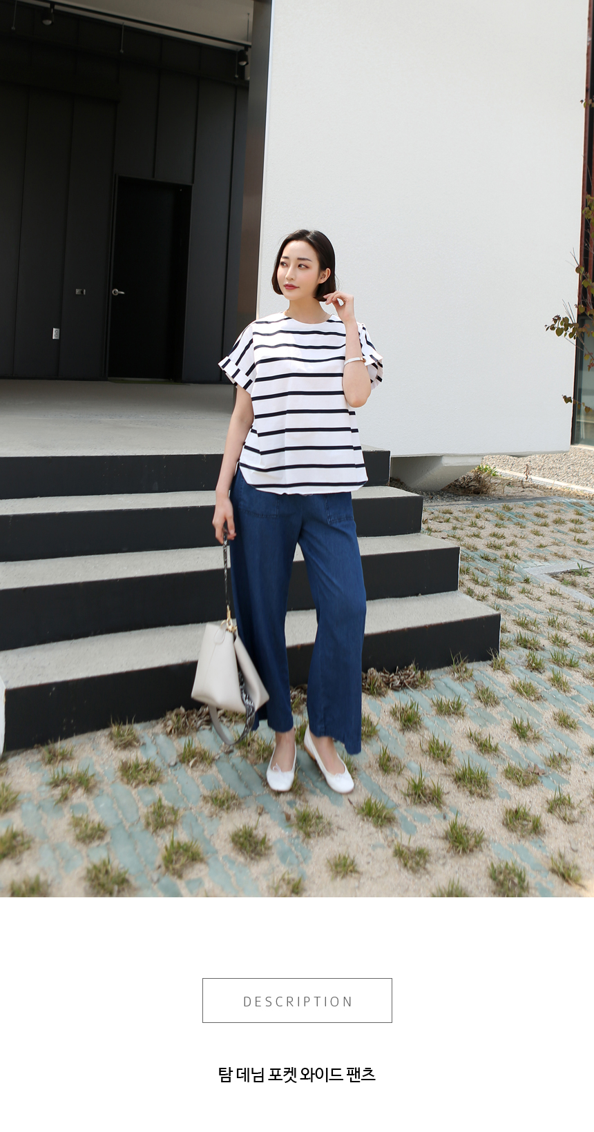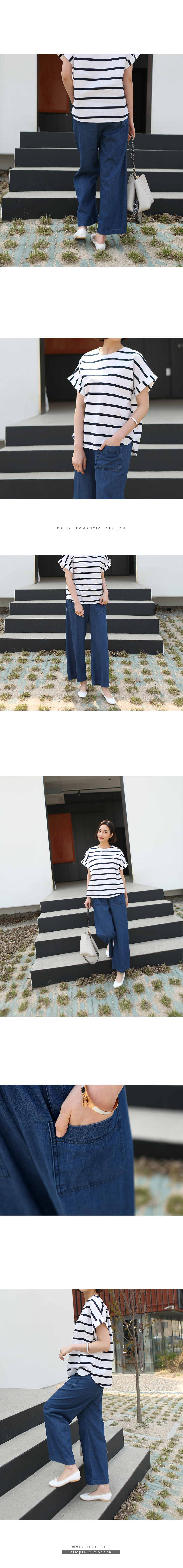 10부 길이감으로 심플한 상의에 팬츠하나만