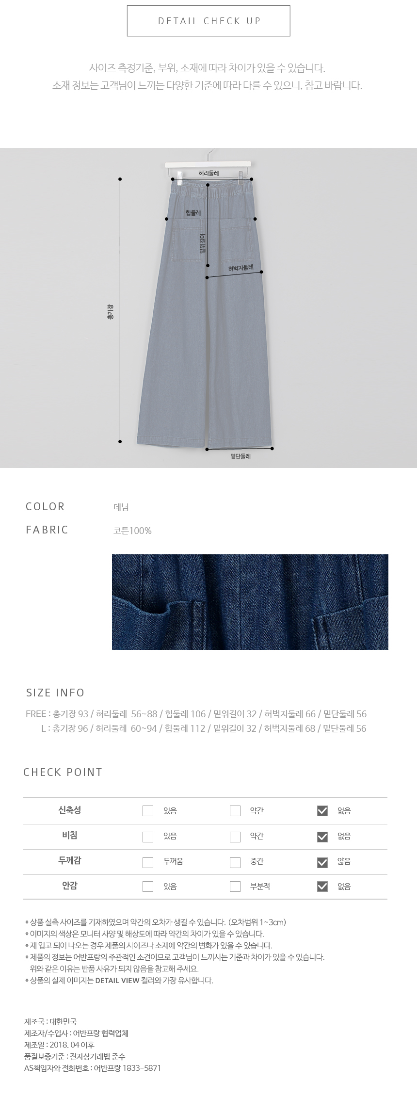 코튼100%의 데님가공된 소재로 두껍지 않고