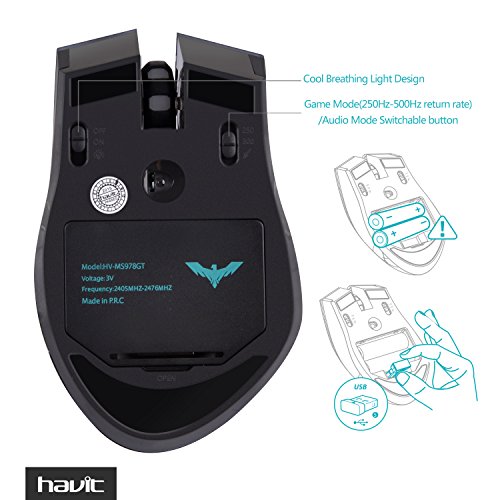 [Ergonomic Comfort] The Havit HV-MS978GT cordless gaming mouse is ergonomically designed to fit snugly under your palm, providing you an incredibly comfortable gaming experience in-hand