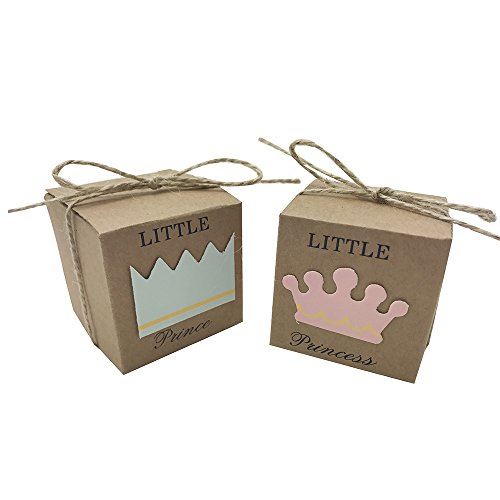 - Assembled Size:2 x 2 x 2 inch; Color:light pink(princess),light blue(prince); Material: Craft Paper,Burlap String.