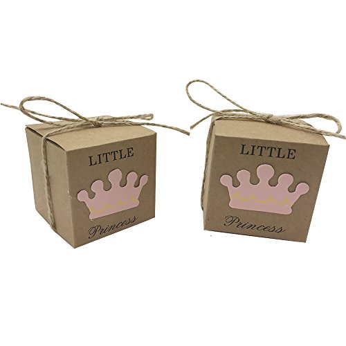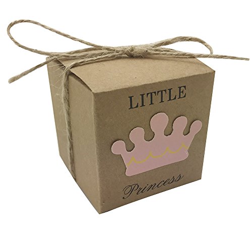 AmaJOY 50pcs Little Princess Baby Shower Kraft Favor Boxes with 50pcs Twine Bow, Rustic Kraft Candy Box Cute Birthday Decoration- with Little Prince Favor Box As Option, Pink/Blue (Pink)