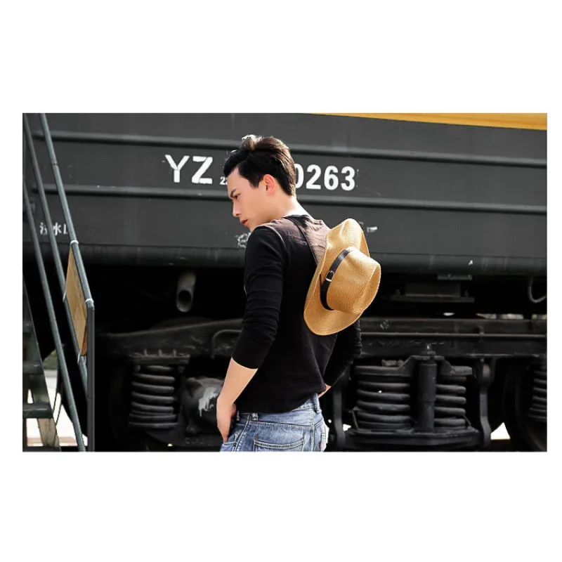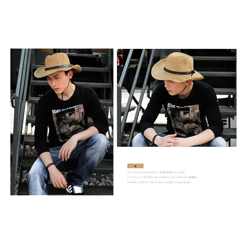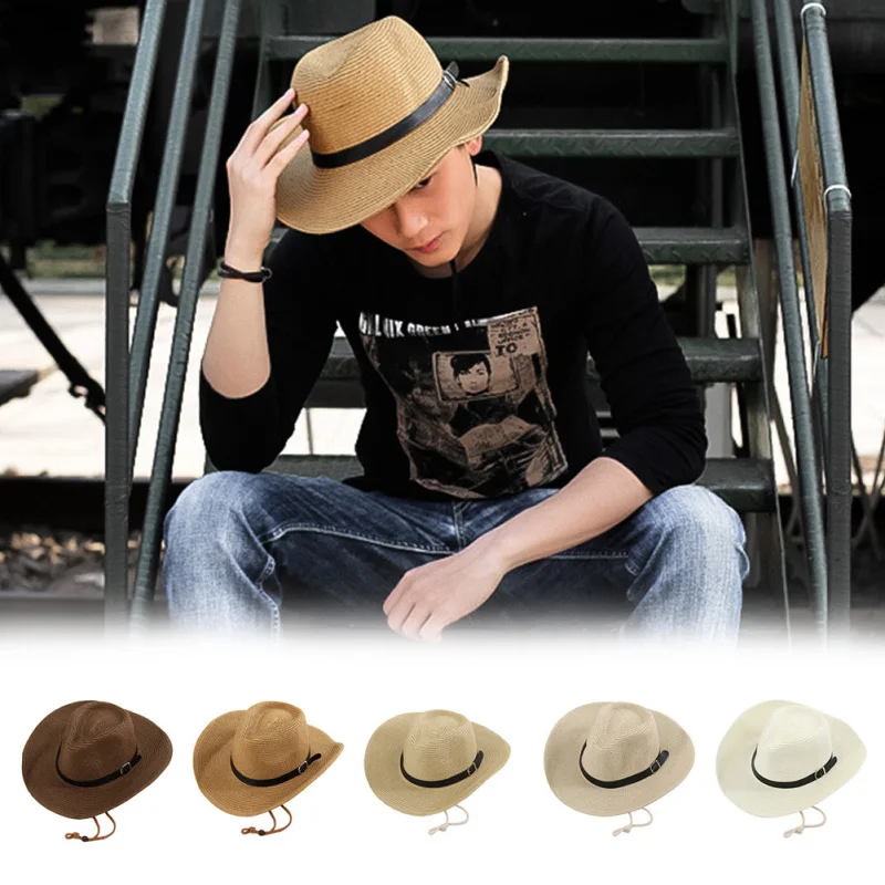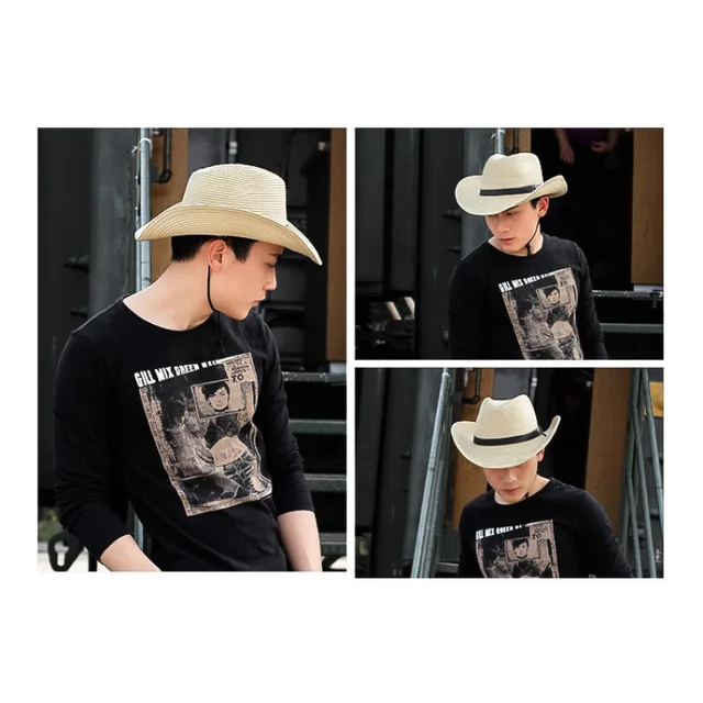 | [해외]남성 여성 모자/자외선 차단제 남성 여름 접는 카우보이 모자 휴일 Sunbonnet 비치 모자 패션 큰 모자 챙 밀짚 모자 커플 Y2 |