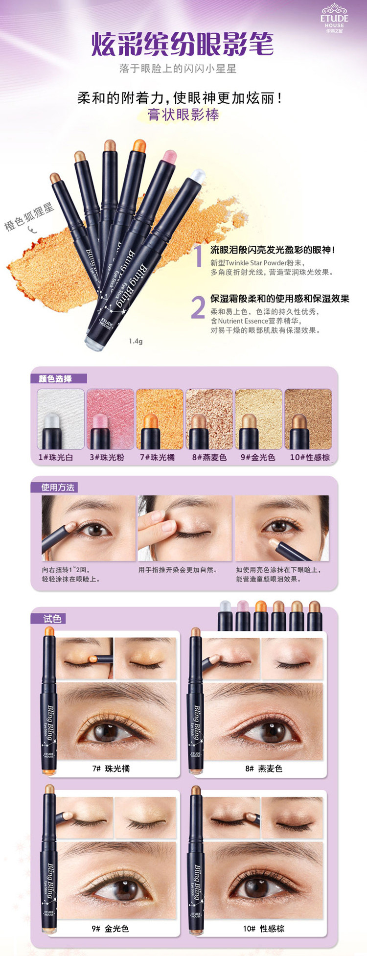 很容易上手,带来闪亮的视觉感受,眼睛更加闪亮 透明底敏感配方 给肌肤最安全的呵护