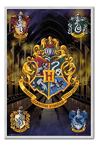 -. Title : Harry Potter Crests Poster Magnetic Notice Board Silver Framed - 96.5 x 66 cms (Approx 38 x 26 inches)