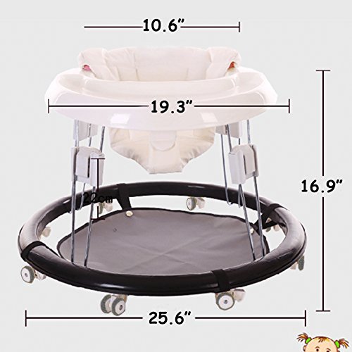 Studio : Creation Core Publisher : Creation Core Binding : Baby Product Product Description Dimensions: 25.6"W x 19.3"L x 16.9"HProduct InformationSuitable for 7-18 months,23.6" - 33.9" baby. PP large surround tray and PU cushionAlong with the multi-directional wheels that offer freedom of movement, the extra wide base provides superior support and stability so your baby can be confident as they navigate new grounds. The large surround tray provides plenty of space for snacks and play! 0