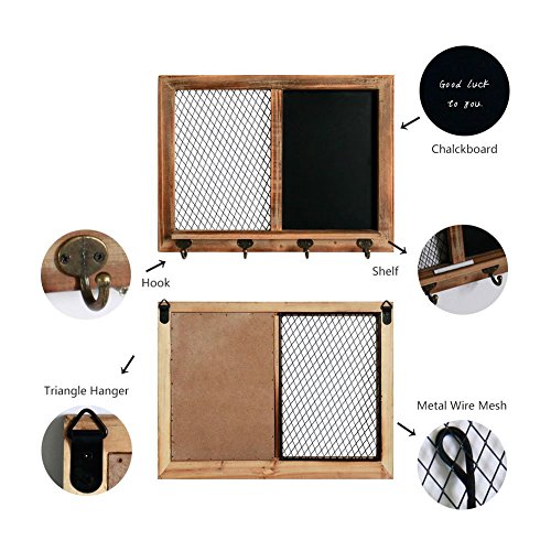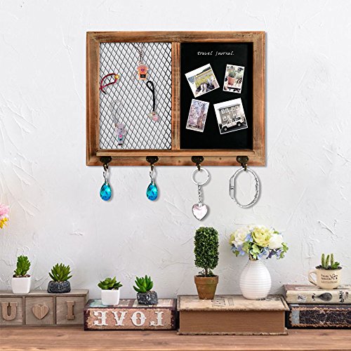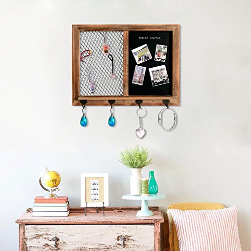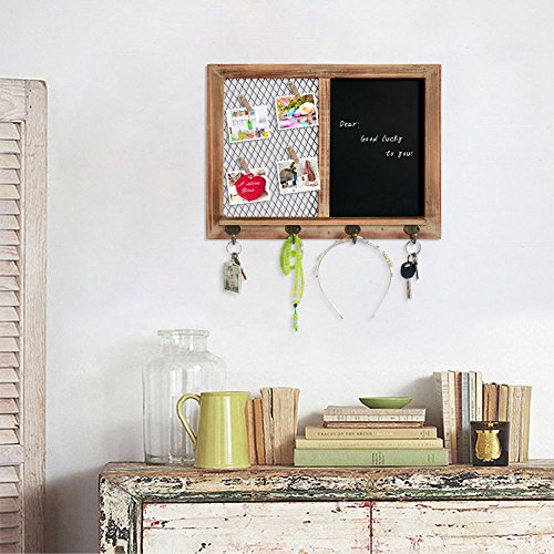 On metal wire mesh part, you can hang beautiful images by wooden clamps or organize a variety of jewelry and other small items as a small hanging jewelry display rack;As well as you can regard chalkboard part as a memo board.
