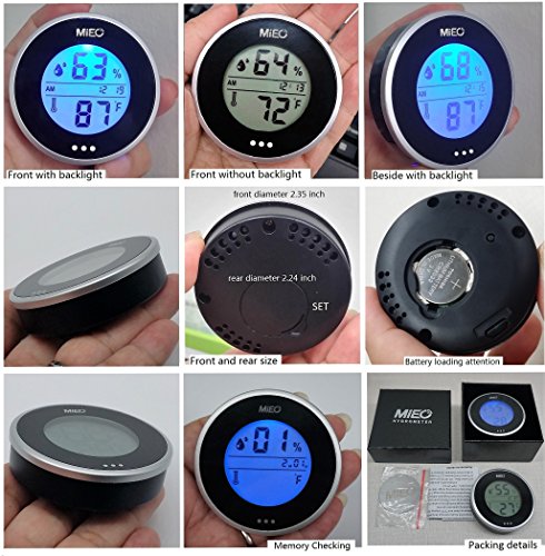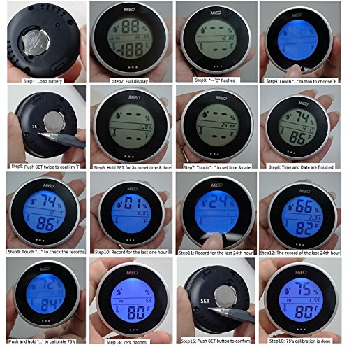 Records the hourly average temperature and humidity for last 24 hours. Checks the memory by touching the CHECK button on front. Clean the memory by pushing down the SET on rear.