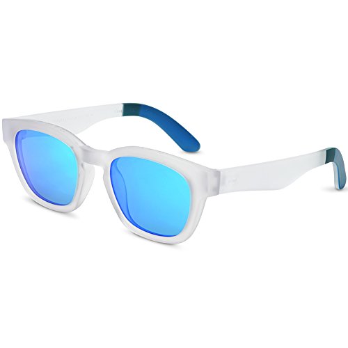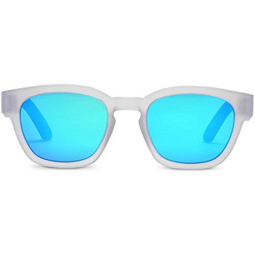 Product Description Grab and go. It's as easy as that.The Bowery sunglasses from TOMS will go with anything that you're wearing. These vintage inspired festival sunglasses features a bold matte white colored square frame with the letters "Give Sight" engraved at upper frame and seafoam blue mirrored lens. The frame itself is constructed with Solaflex, a unique rubberized material designed to provide long-lasting durability, comfort, and fit. 0