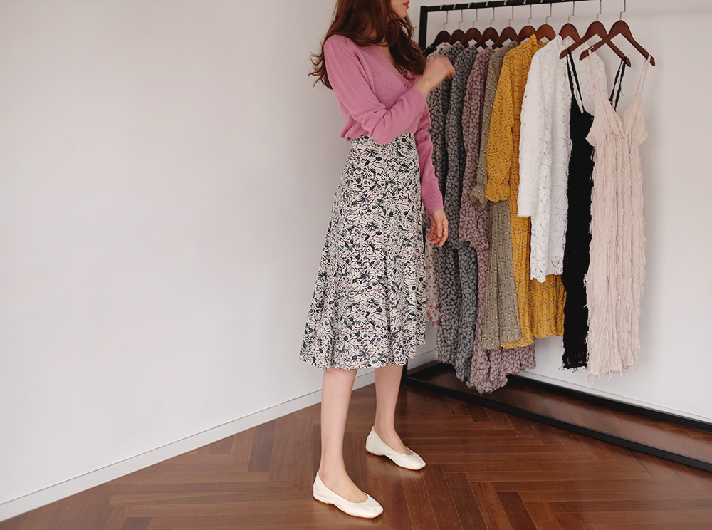 페이즐리 패턴으로 페미닌한 무드 가득한 스커트에요:)